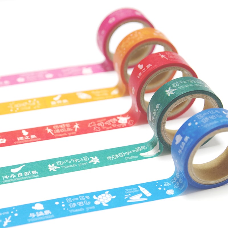 奄美群島5つの島、奄美大島(加計呂麻島・請島・与路島を含む)、喜界島、徳之島、沖永良部島、与論島をモチーフにした「奄美群島“五島地(ごとうち)”マスキングテープ」シリーズの登場です!!