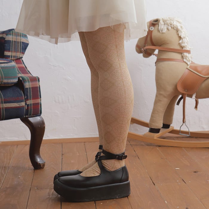 肌なじみの良い色味で様々なファッションと相性◎ハデな色の柄タイツには抵抗がある方へもオススメです。